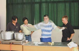 请拉面师傅到公司为外国客户表演中国传统的拉面功夫