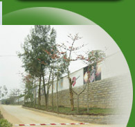 | 绿化提供了优美环境,弯曲的碎石路为员工提供了工作之余的散步好场所 | |
