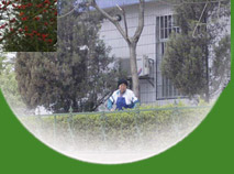 | 辛勤的园艺员正在修剪花、木、草 | |
