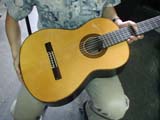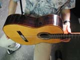 | 正确的持琴姿势应该示一只手抓住琴颈,另外一只手托住琴的侧板,这样,无论是要看吉他的面板、侧板或是背板都可以作到,同时琴的侧板材料比较厚比较结实,这样的持琴姿势不会对琴造成损坏。 |